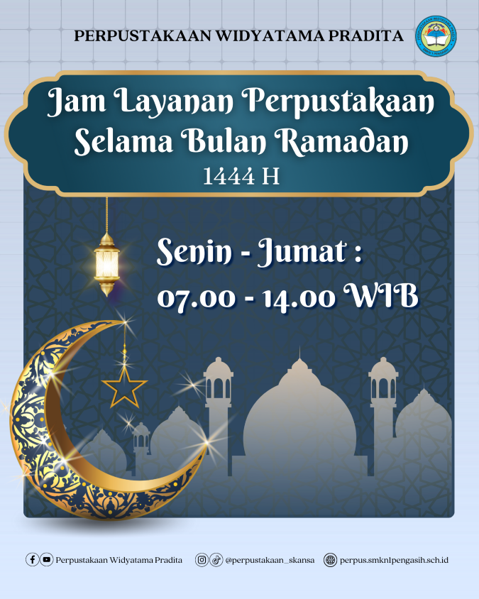 Selama bulan Ramadhan jam pelayanan Perpustakaan Widyatama Pradita mengalami perubahan menyesuaikan dengan jam KBM siswa yakni: